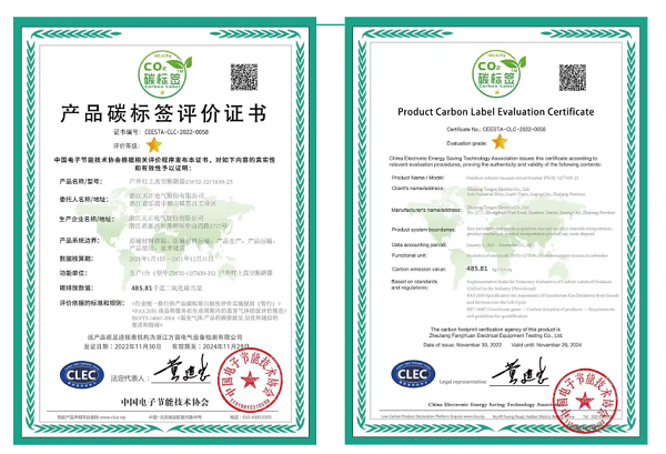 此次碳标签评价表明,天美mv免费mv电气生产的户外柱上真空断路产品,在碳排放大数据方面按国际通行惯例推进,并具备一定的优势,对促进产品全供应链的温室气体减排,达成“双碳”目标具有积极作用。此外,天美mv免费mv还获中国电子节能技术协会颁发的低碳产品供应商证书。